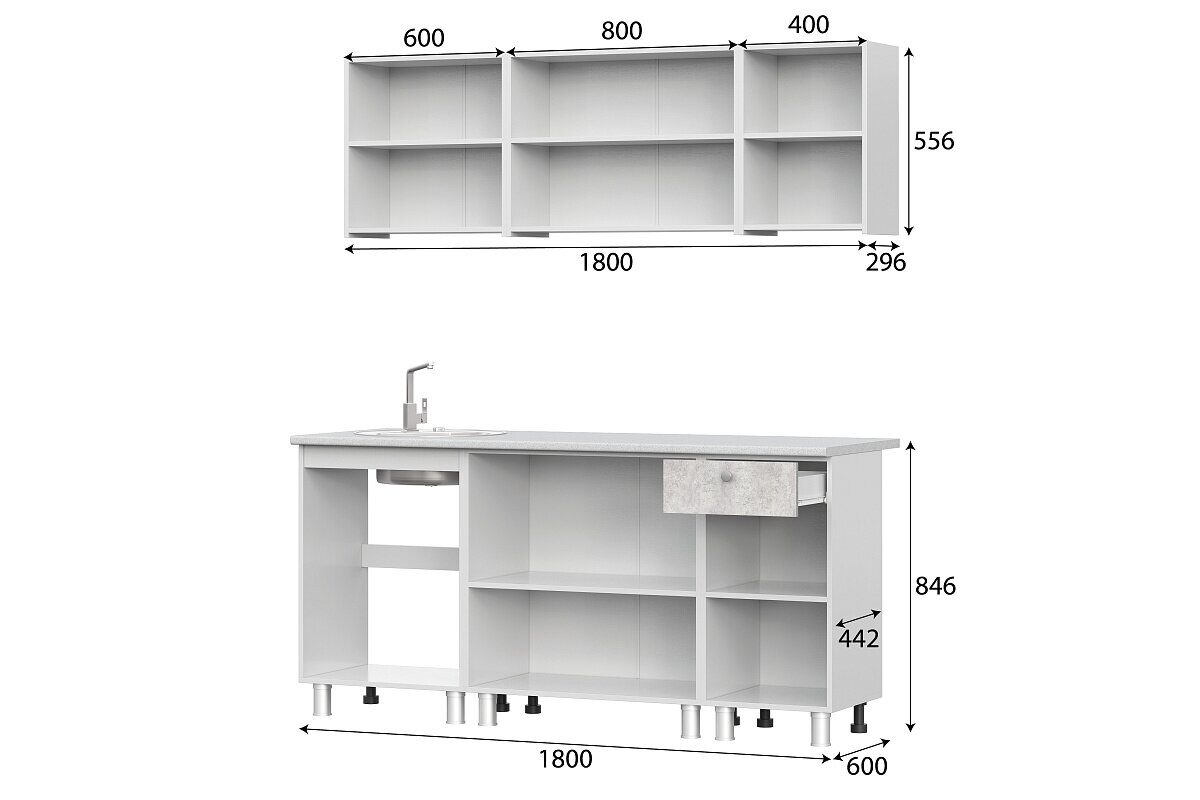 Кухонный гарнитур NN Мебель "КГ-1" (1,8 м) - фасады выполнены из ЛДСП в мягких серых и белых тонах, создавая светлую и нейтральную атмосферу, которая легко вписывается в любой интерьер. Белая столешница из постформинга отличается высокой устойчивостью к царапинам, пятнам и высоким температурам, обеспечивая долгую службу без потери внешнего вида. Каркас и фасады из ЛДСП гарантируют прочность и стабильность конструкции, а также позволяют легко поддерживать чистоту. Ширина 180 см и глубина 60 см делают гарнитур удобным для размещения кухонных приборов, посуды и хранения, не занимая лишнего места. Вы можете купить готовую кухню в светлых оттенках оптом и в розницу по всей Беларуси